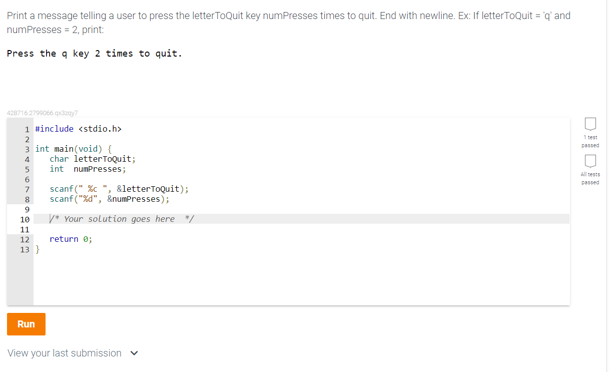 Solved Print a message telling a user to press the